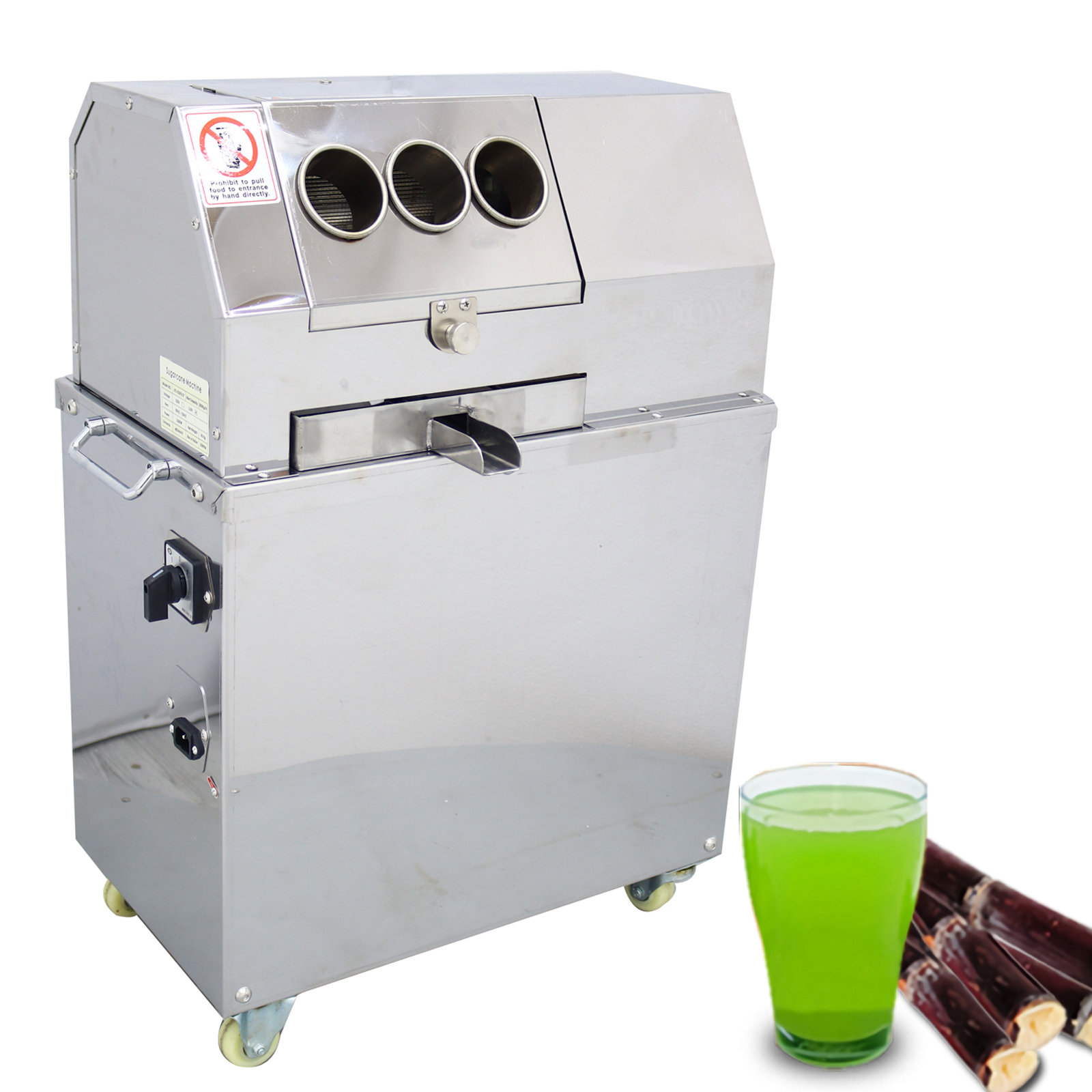 110V 1.5KW Electric Sugarcane Press 3 Rolls Vertical Sugar Cane Ginger Press Juicer Stainless Steel Sugarcane Juicer Grinder Extractor with 3 Feed Port and 2 Sets Peeling Knives