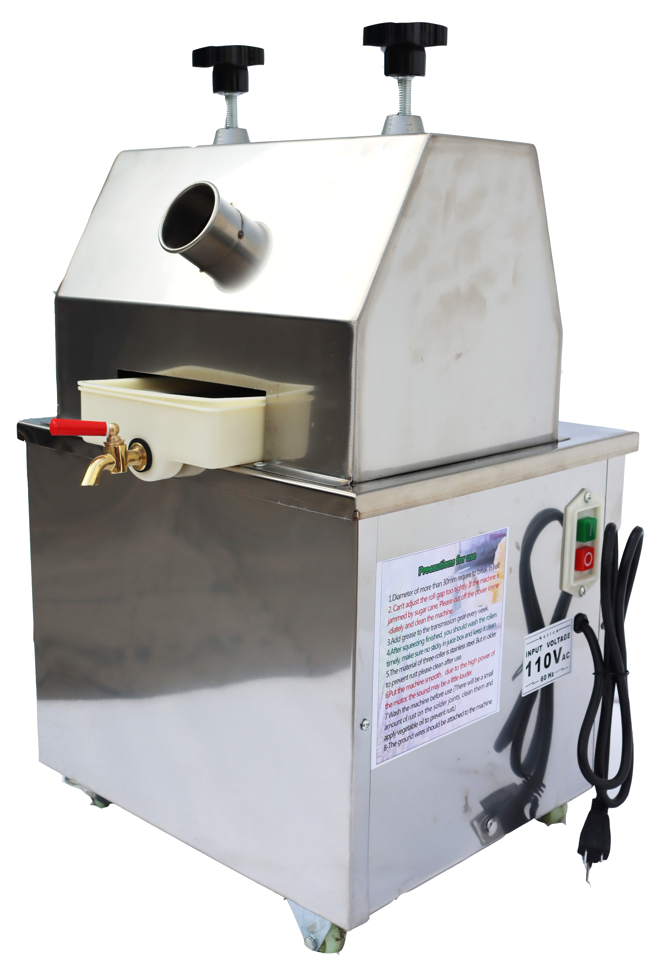 110V 1.1KW Electric Sugarcane Press 3 Rolls Vertical Sugar Cane Ginger Press Juicer Stainless Steel Sugarcane Juicer Grinder Extractor with Adjustable Knob and Steel Tray