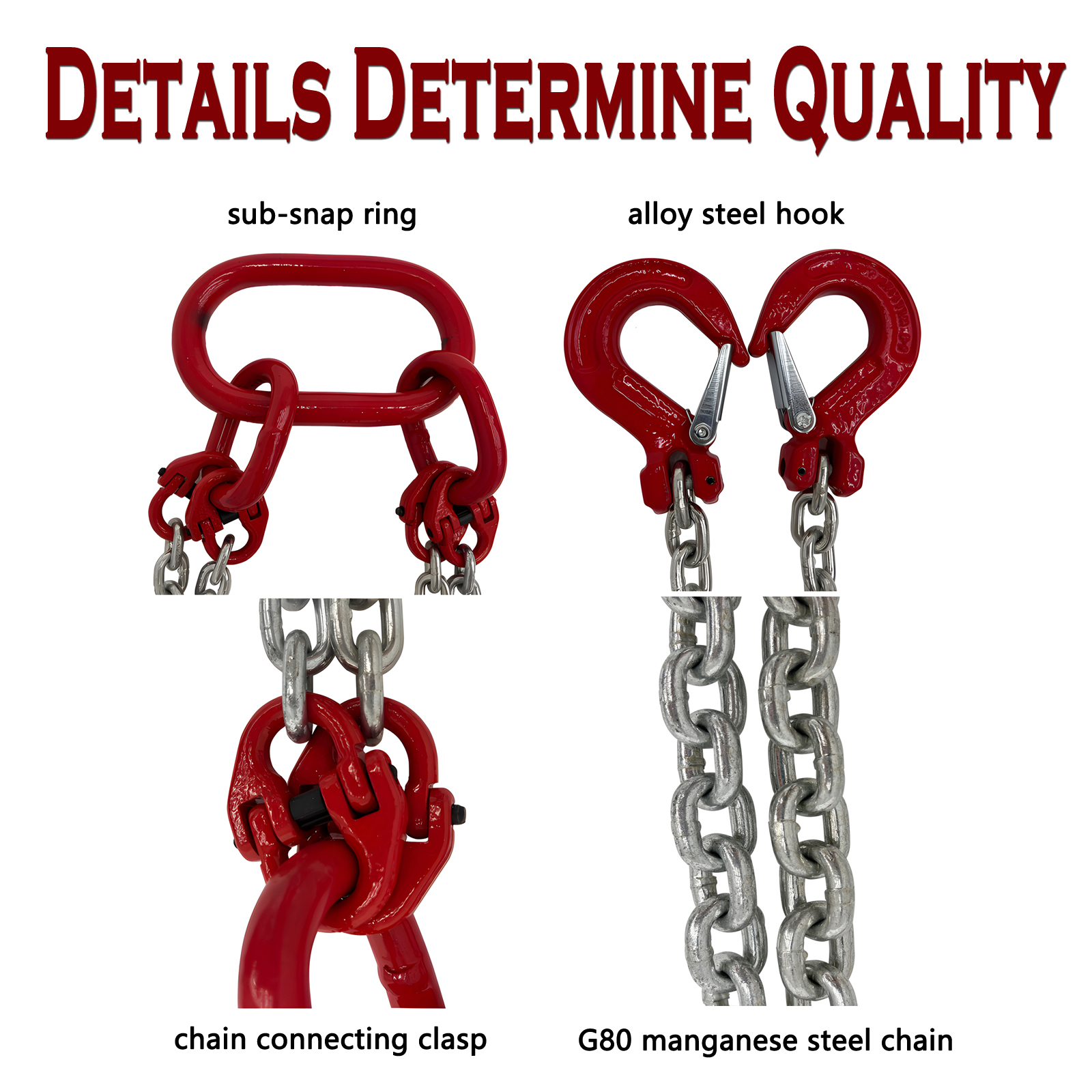 4.9FT Chain Sling G80 Manganese Steel Galvanized Chain Hoist Lifts 4 Ton with 4 Leg Grab Hooks